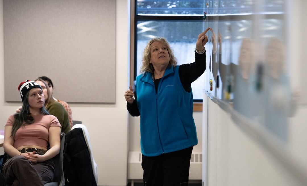 Sara Quinn walks students through the semester timeline for Magazine Editing and Production at the Hubbard School of Journalism and Mass Communication at the University of Minnesota. (Courtesy: Regina McCombs/University of Minnesota)
